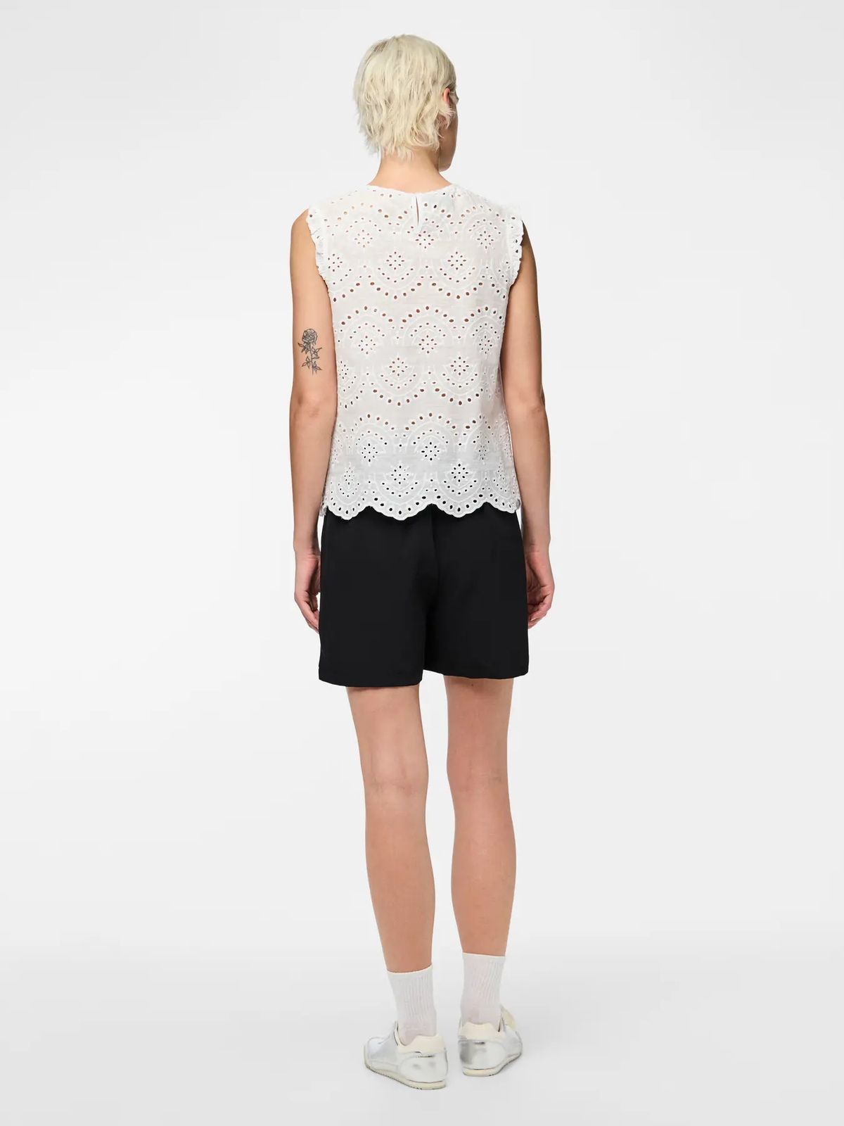Blusón s/m con calados. De color blanco. De cuello redondo. Con volante en la manga y con abrochado en la espalda. Tejido fino y de tacto suave y agradable. Tejido de buena calidad y fácil lavado. Fabricado con concepción ecológica y responsabilidad medio ambiental. Una prenda que siempre te aportará una elegancia natural y minimalista. Además es un auténtico comodín que lo podrás combinar a las mil maravillas con múltiples propuestas. Y no tiene fecha de caducidad, lo que lo convierte en una gran inversión para tus looks y para tu bolsillo. Acertarás con la compra! Estilo casualwear.