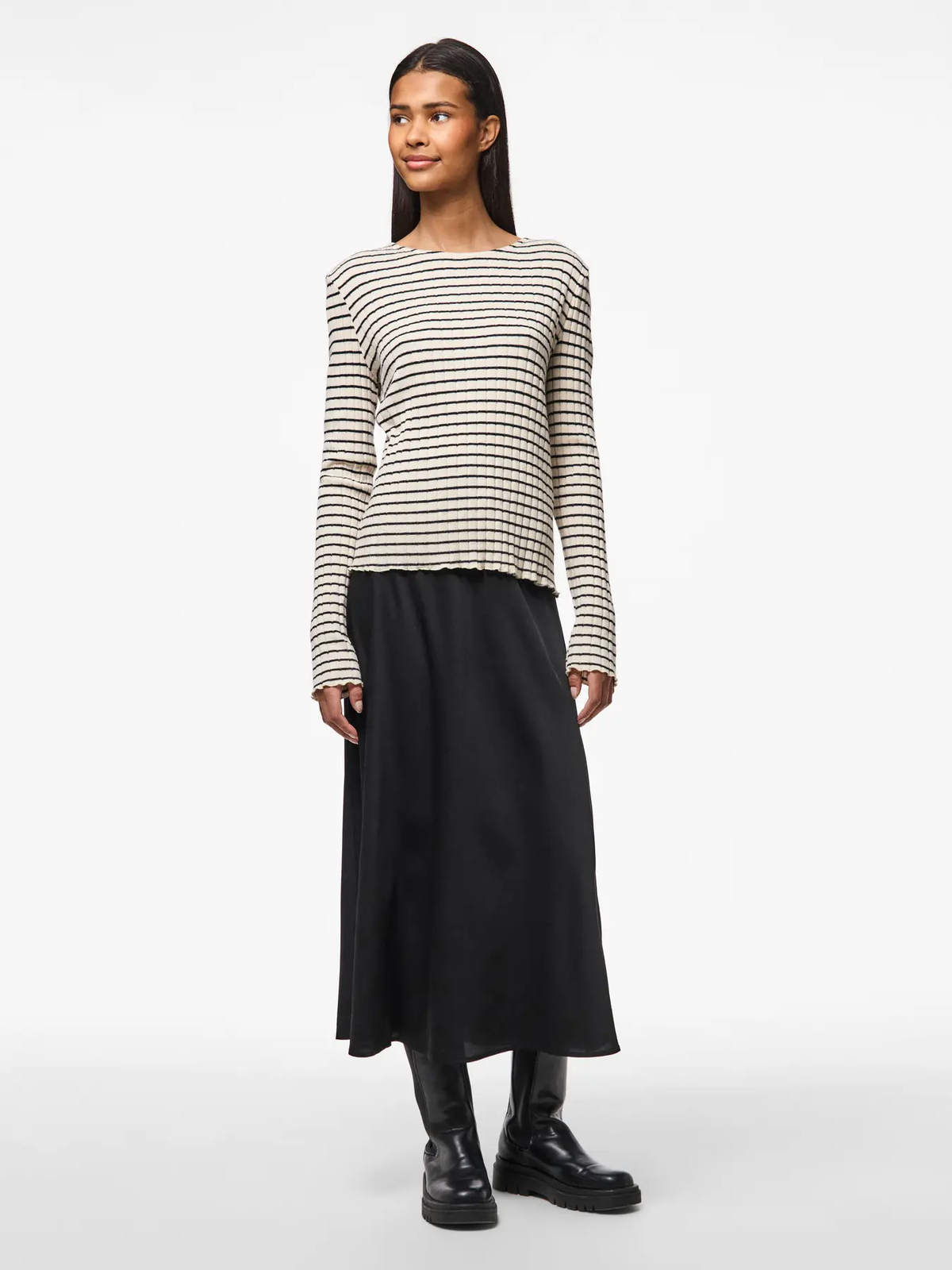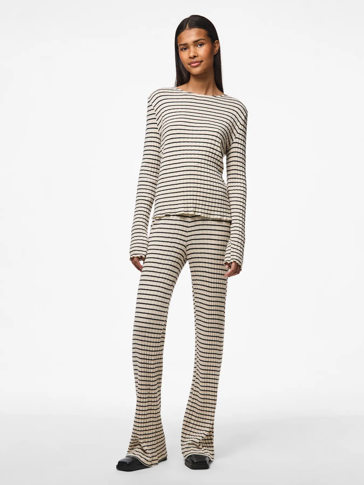 Camiseta corta de canalé con rayas Pieces Birch