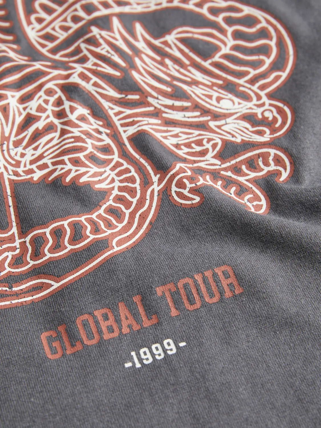 Camiseta m/c Limitless. De color gris oscuro y print bicolor en granate y crudo. De cuello redondo. De patronaje amplío y relajado. Tejido fino, ligero y de tacto suave y agradable. Tejido de buena calidad y fácil lavado. Fabricado con concepción ecológica y responsabilidad medio ambiental. Una prenda básica con un toque rebelde y desenfadado que siempre aportará aire fresco a tus looks. Además es un candidato perfecto para todas aquellas que les apasionan las camisetas anchas y cómodos. Y no tiene fecha de caducidad. Acertarás con la compra! Estilo casualwear.