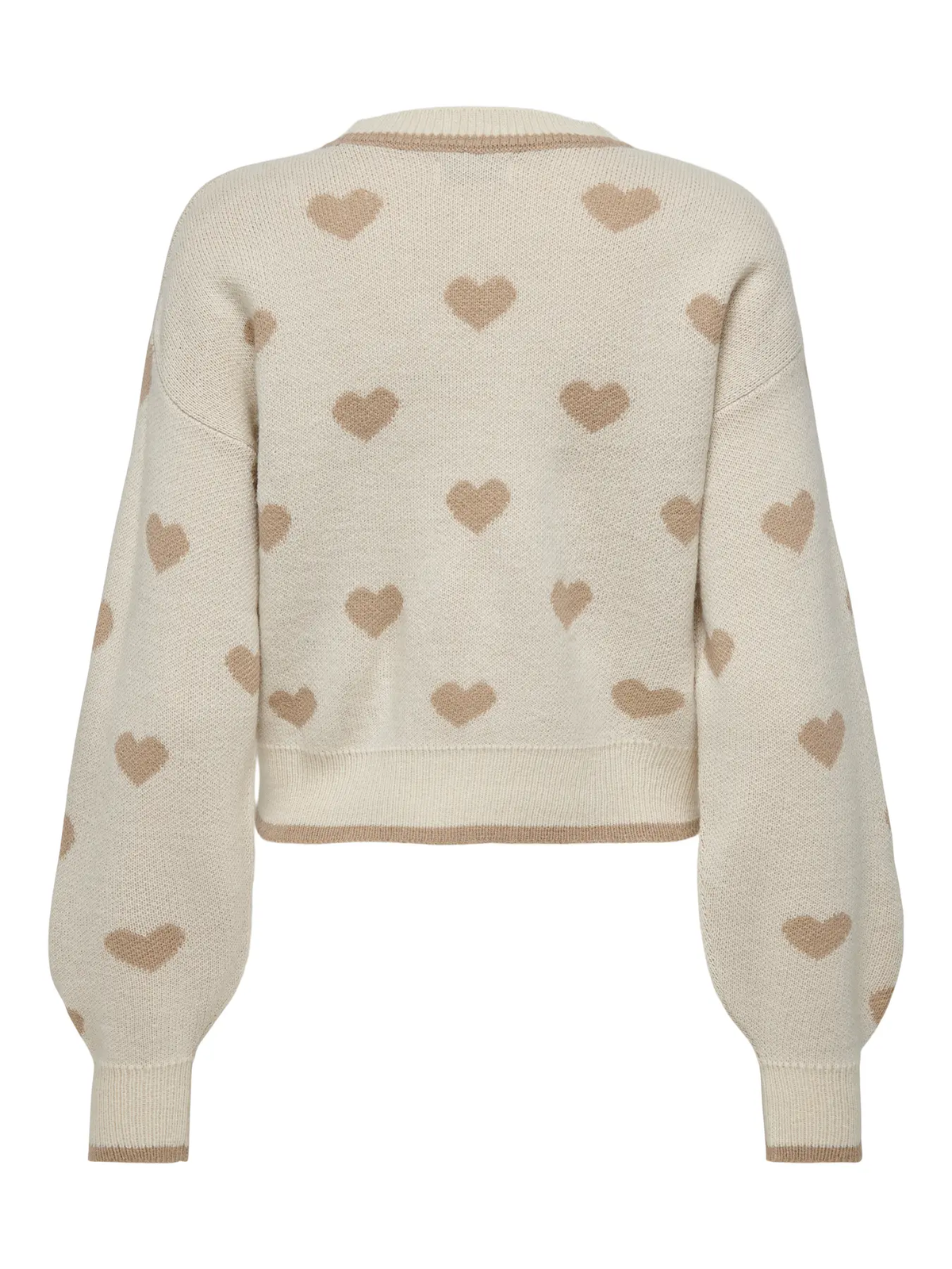Jersey corto con corazones. De color beige y corazones en tostado. De cuello redondo. Punto de tacto suave y agradable. Punto de buena calidad y fácil lavado. Fabricado con procedimientos ecofriendly y respetuosos con el medio ambiente. Una prenda, con un toque romántico y femenino que siempre aportará un plus a tus looks. Además es ultraversátil y polivalente para combinar con una gran variedad de propuestas. Y con un marcado carácter permanente que lo convierte en un auténtico must have de todo buen fondo de armario. Acertarás con la compra! Estilo causalwear.