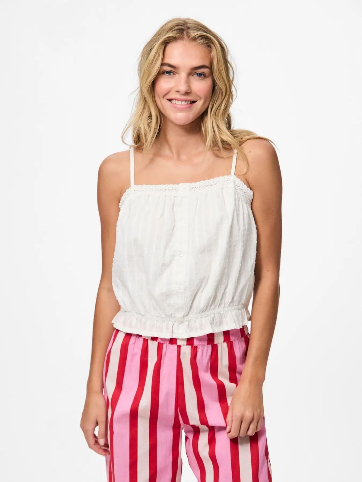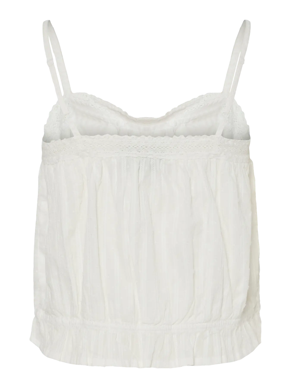 Top corto de tirantes con goma Pieces Cloud Dancer